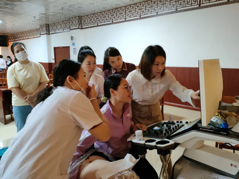 为保证教学质量和效果,培训班采用理论结合实践,上机操作,手把手教学的培训方式相结合,全面学习了胃肠充盈超声探查的手法技巧、各类胃肠疾病的超声学特点、胃肠充盈超声诊断规范及注意事项等。尤其是“手把手”实操教学,让学员们对胃肠充盈超声造影的规范化操作、诊断有了更深入的掌握。