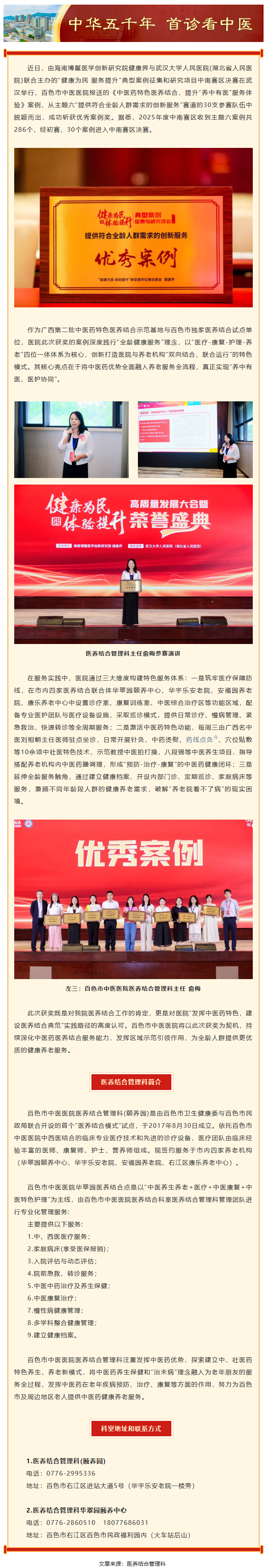 【喜讯】百色市中医医院“中医药特色医养结合”案例荣获中南赛区优秀案例奖!