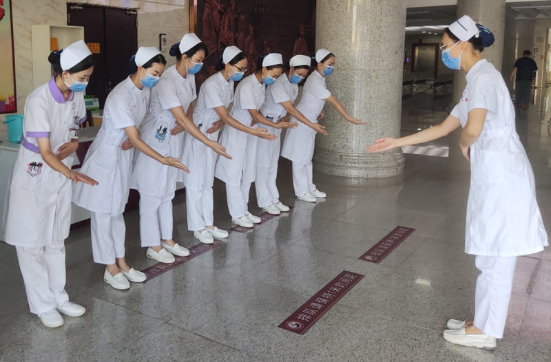 坚持每日交接班,规范服务礼仪。门诊值班人员进行岗前仪容仪表整理、礼仪培训,积极向患者展示工作形象、服务行为、服务用语,让患者及家属踏入医院的每一步都感受到专业和暖心,展现百中医的精神风貌。