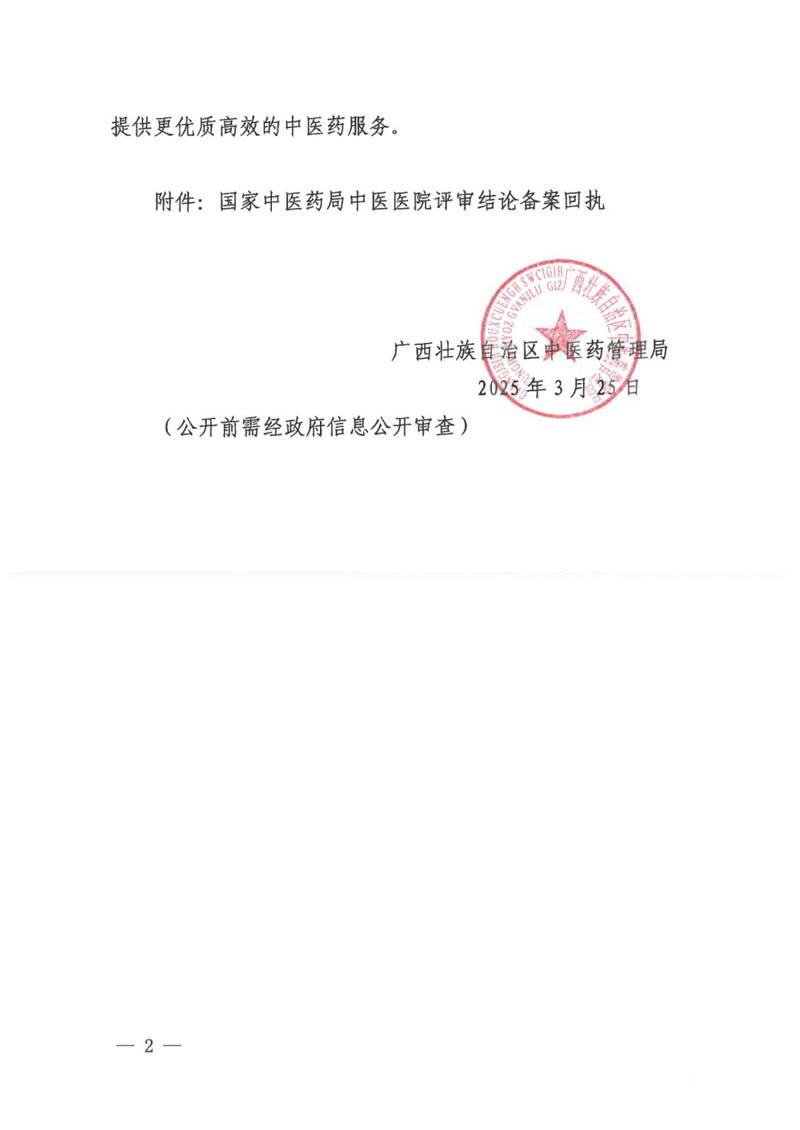近日,广西壮族自治区中医药管理局正式发文公布百色市中医医院成功通过国家三级甲等中医医院评审!这不仅是医院发展史上的高光时刻,更是百色市中医药事业蓬勃发展的有力见证,标志着医院中医药服务能力实现了质的飞跃,开启了服务群众健康的全新篇章。