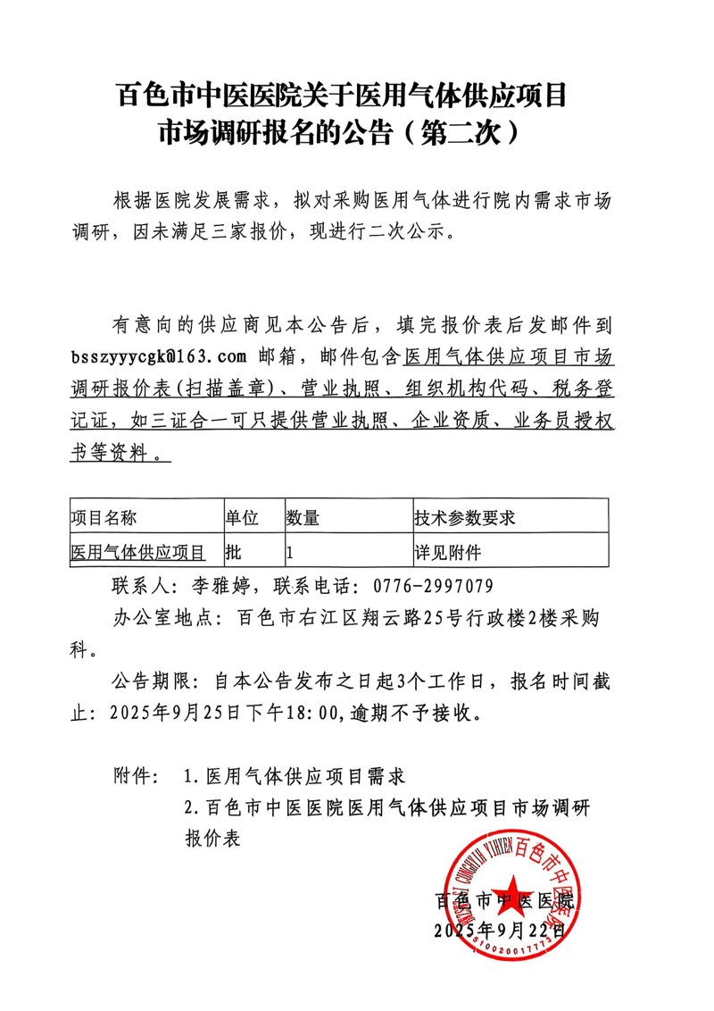 附件1:医用气体供应项目需求.docx附件2:百色市中医医院医用气体供应项目市场调研报价表.xlsx