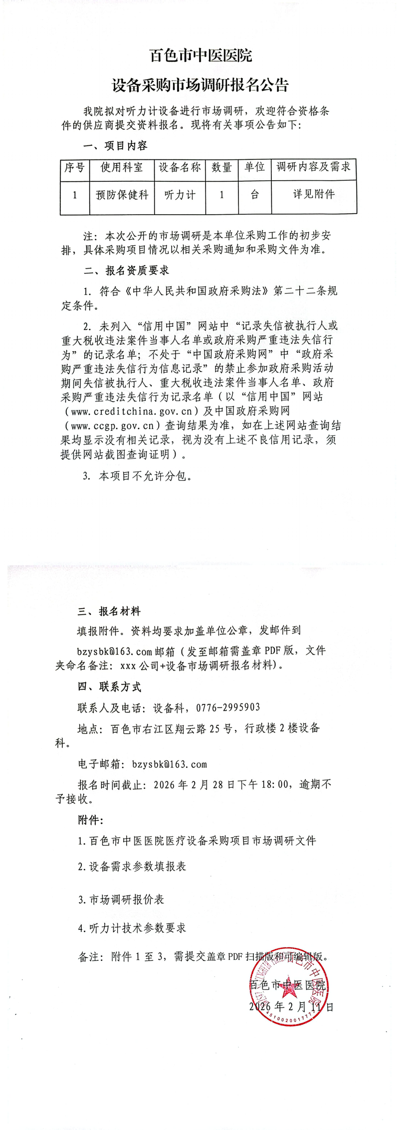 1.百色市中医医院医疗设备采购项目市场调研文件(必填).docx2.设备需求参数填报表(必填).xlsx3.市场调研报价表(必填)xlsx.xlsx4.听力计技术参数要求.docx