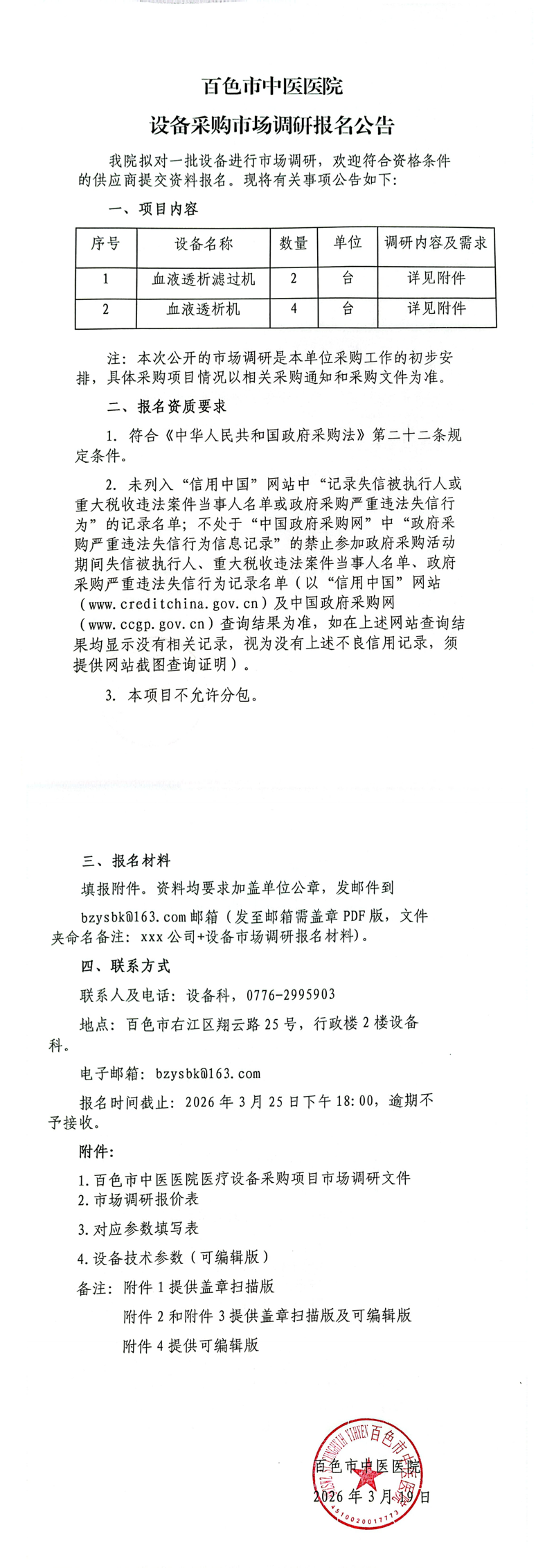 1.百色市中医医院医疗设备采购项目市场调研文件(必填).docx2.市场调研报价表(必填)xlsx.xlsx3.对应参数填写表(必填).xlsx