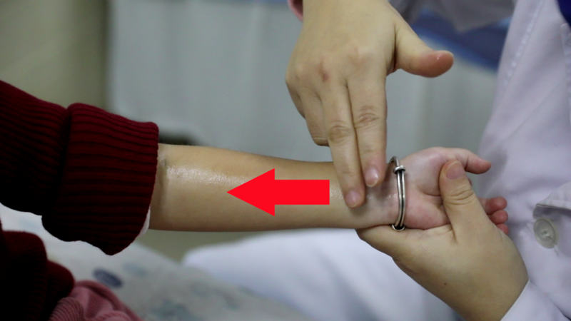 1.清天河水:前臂正中,腕横纹至肘横纹成一直线。用食、中二指指腹自腕推向肘。