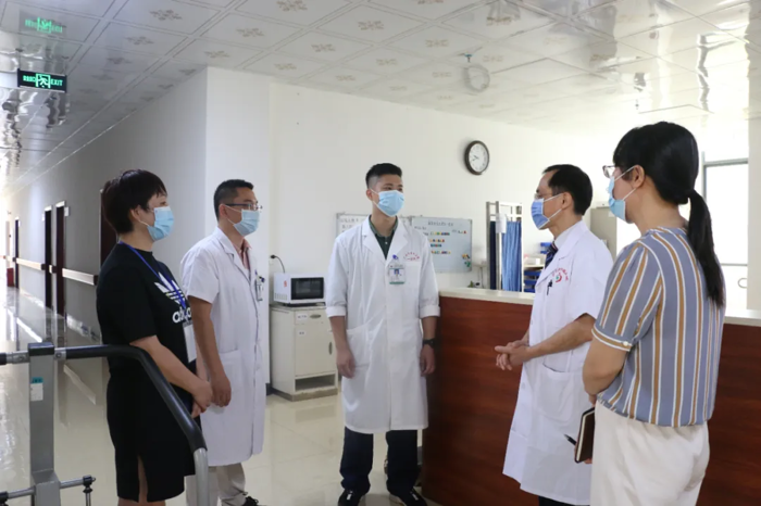 近日,深圳市中医院2名帮扶专家、广西中医药大学第一附属医院8名专家正式入驻我院。5月7日上午9时,黄权院长深入一线看望慰问深圳市中医医院帮扶专家、广西中医药大学第一附属医院入驻专家团队及特殊引进人才李胜酋医生,相关科室负责人陪同。